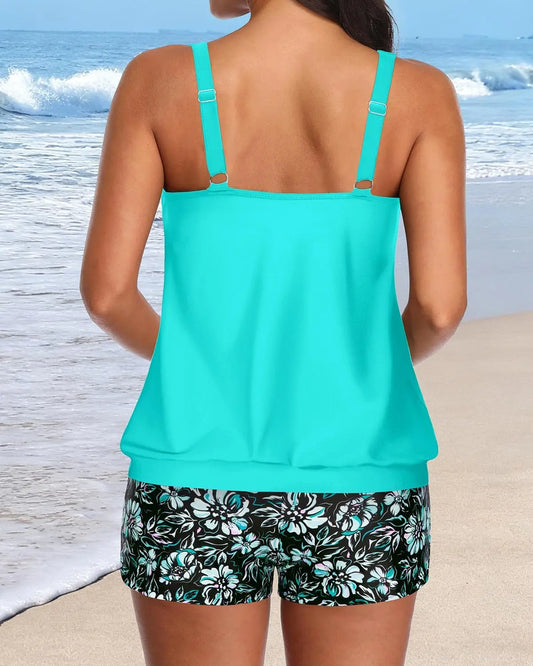 Women's Tankini Set with Floral Print Sports Style Two-Piece