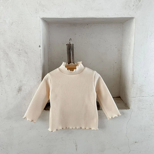 Girls' Solid Color Lace Round Neck T-shirt