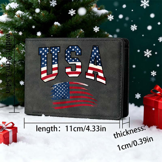 Men' Faux Leather Wallet with USA Flag & Stars Design