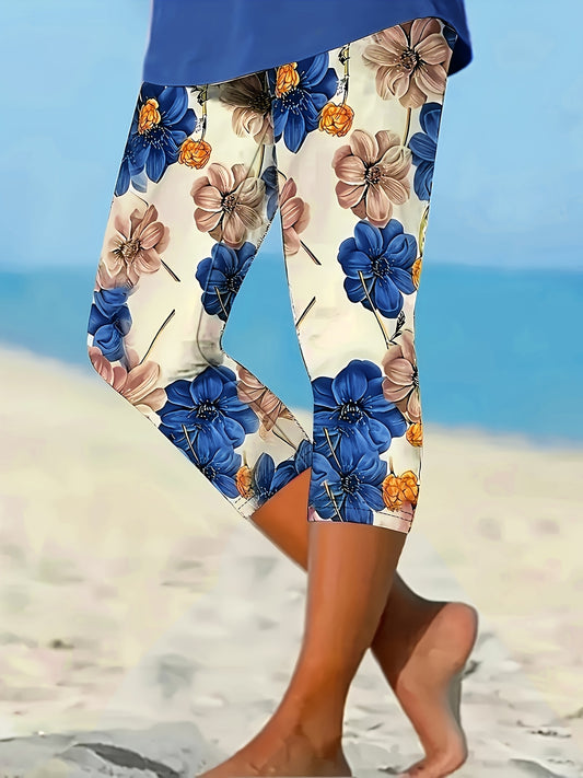 Fit Plus Size Women's Casual Pants Featuring a Plant Print