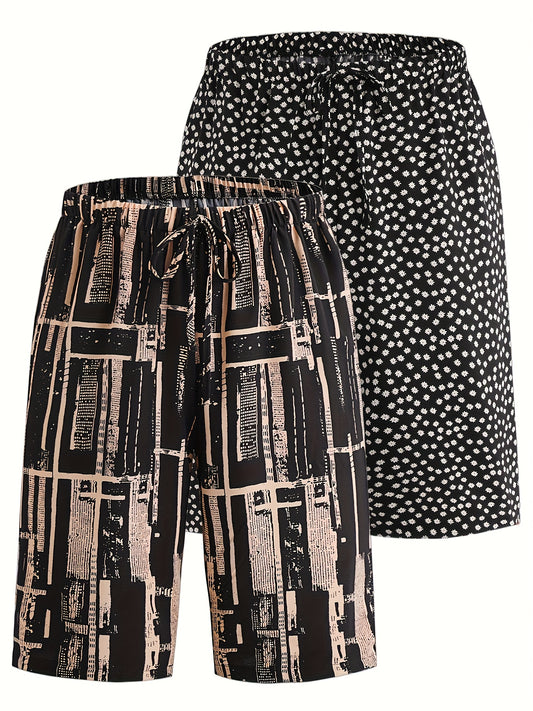 Plus Size Bohemian-style Tie-dye Print Elastic Drawstring Pants