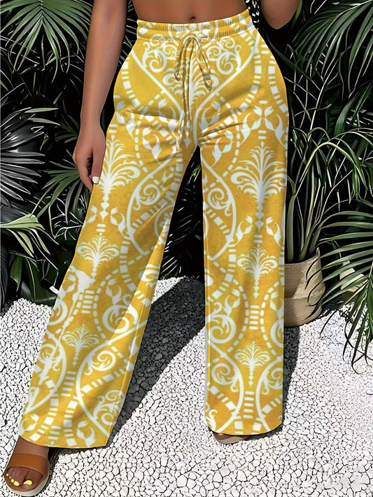 Plus Size Geometric Print Wide Leg High Rise Pants