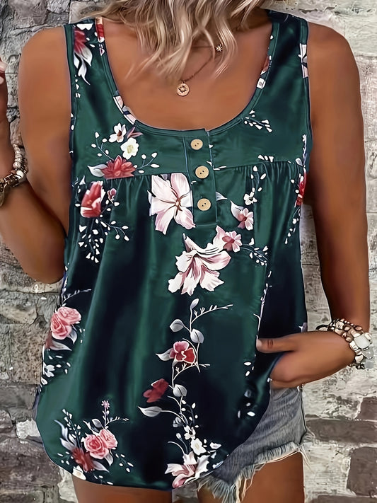 New Plus Size Women's Casual Floral Print Round Neck Tank Top