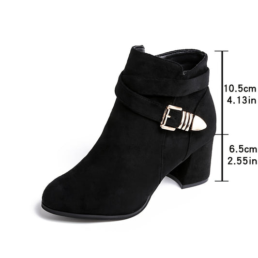 Short Ankle Boots with Chunky Heel, Pointed Toe, and Side Zipper Boots