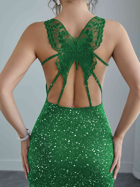Sequin Butterfly Gown Glamorous HighSlit Evening Sparkle