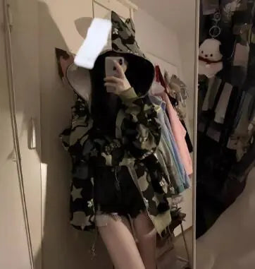 Loose-Fit Star Print Hooded Sweatshirt for Women