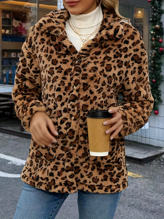Leopard Print Coat Women's Plus Size Leopard Print Long Sleeve Coat