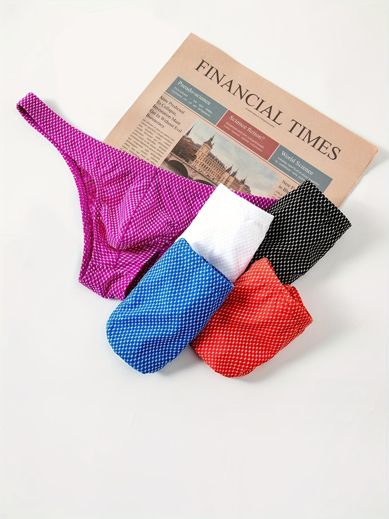 5pcs of Men's Bikini Swim Trunks, Low-Waisted, Sexy Mesh Jacquard Underwear, Fabric, High Elasticity, Breathable, And Comfortable Small Triangle Underwear.