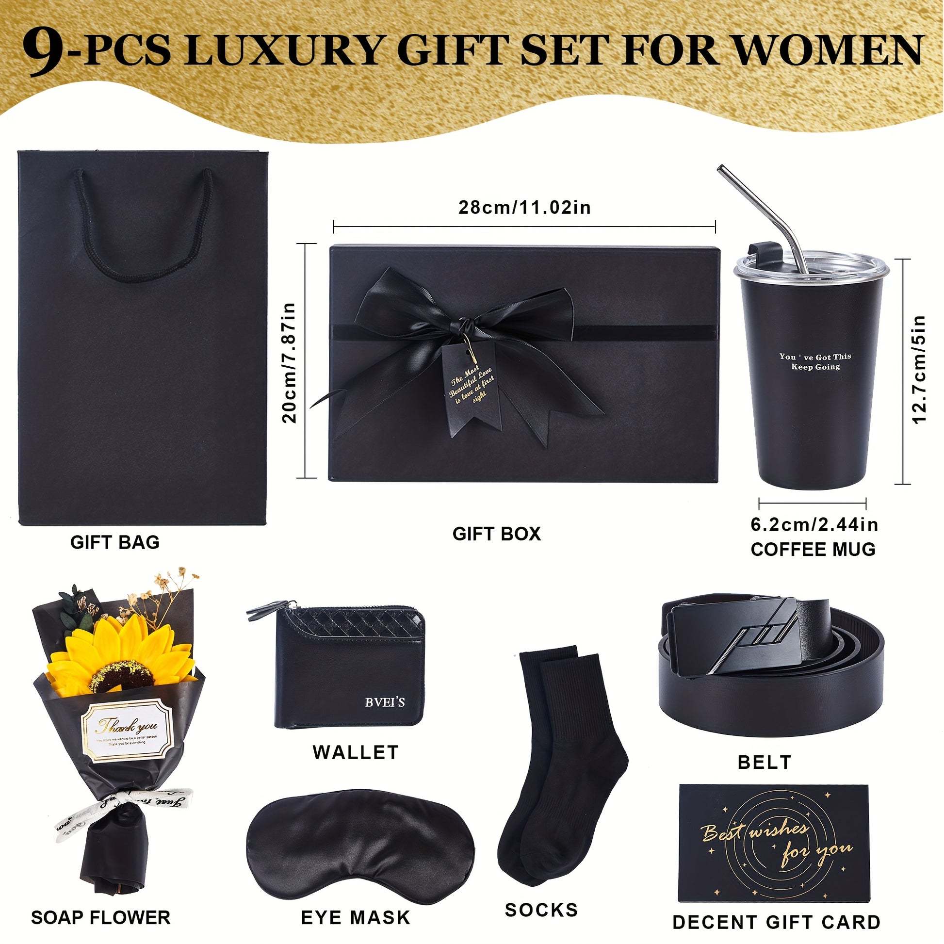 ★★★★★9pcs Men's Luxury Gift Set - Stainless Coffee Mug, Socks, Belt, Wallet, Greeting Card, Soap Flower, Gift Box/Bag & Eye Mask - Reusable & All-in-One Present for Husband, Boyfriend, Dad - Ideal /Anniversary/Christmas