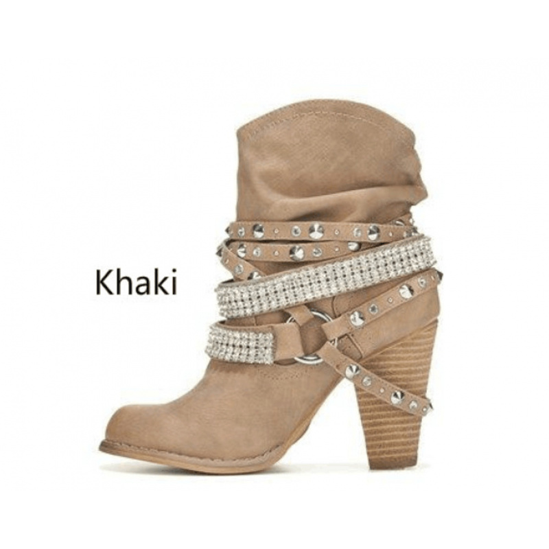 ★★★★★Local Warehouse Boots Round Toe Block Heel Ankle Boots Chic Metal Accents, Women Shoes