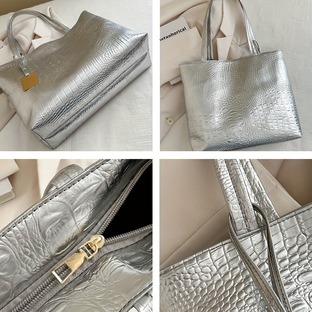 ★★★★★Lightweight, Business Casual Large Capacity Tote Bag, PU Double Handle Shoulder Bag, Women's Fashionable Commuter and Work Handbag with Crocodile Pattern Detail Shoulder Handbag