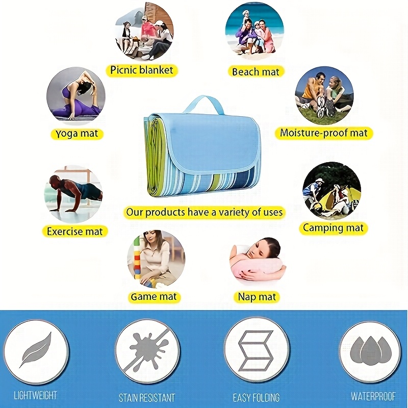 ★★★★★Extra-Large Heavy-Duty Sand proof Beach Blanket & Portable Outdoor Mat - Large Sand-Resistant Camping, Picnic, Beach, Hiking Ground Sheet - All-Season Lightweight Blanket for Travel, Backyard, Poolside - Easy Setup No Prep Nee