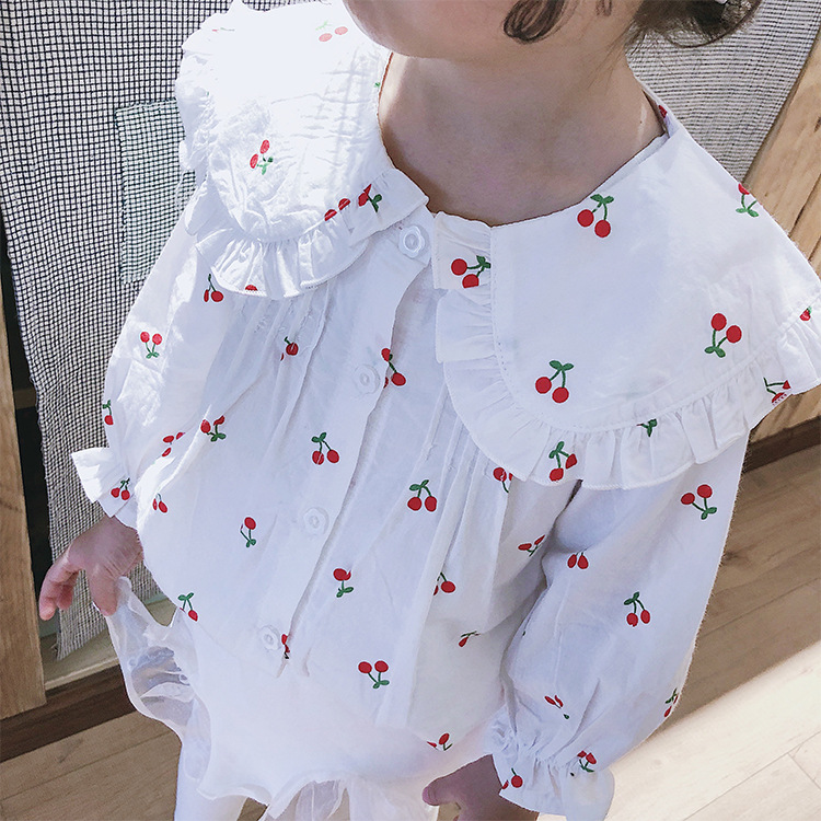 Discover the perfect blend of style and comfort with our Girls Floral Long Sleeve Shirt. This charming shirt features a delightful cherry pattern that adds a touch of whimsy to any outfit, making it a must-have for your little one's wardrobe.
