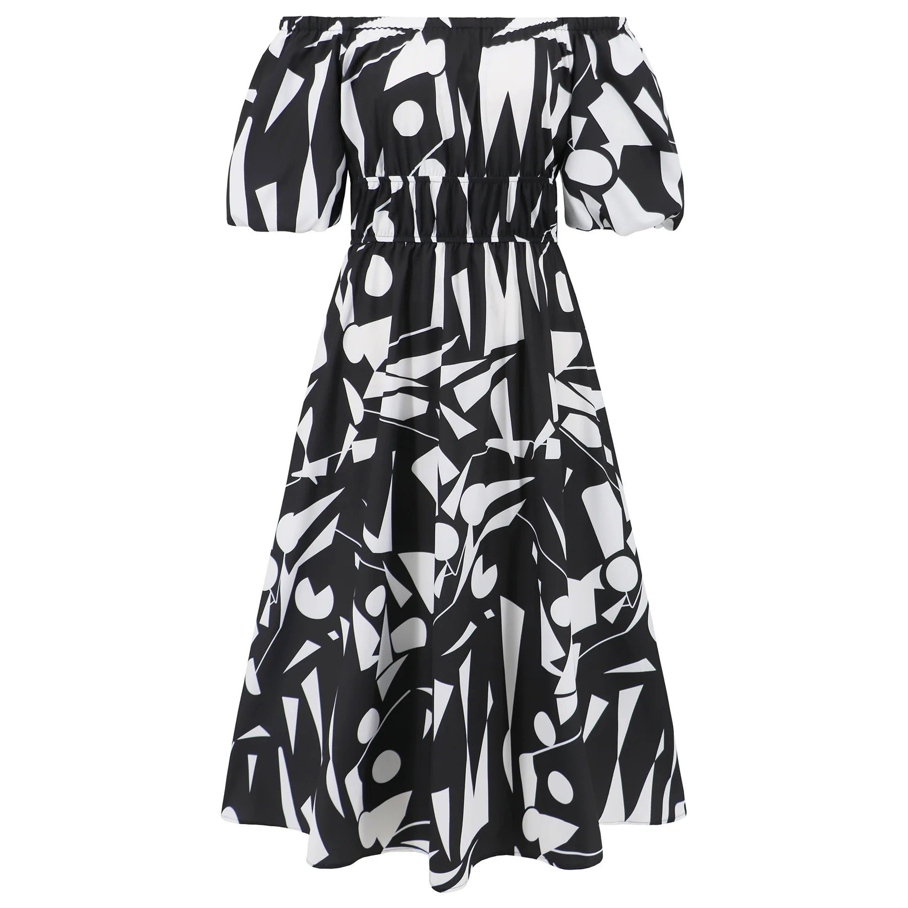 Women's lantern sleeve casual floral print off shoulder knee length dress, women's floral print bubble sleeved Bohemian long dress off shoulder evening dress with belt, bubble sleeved floral print Bohemian flowing knee length dress.