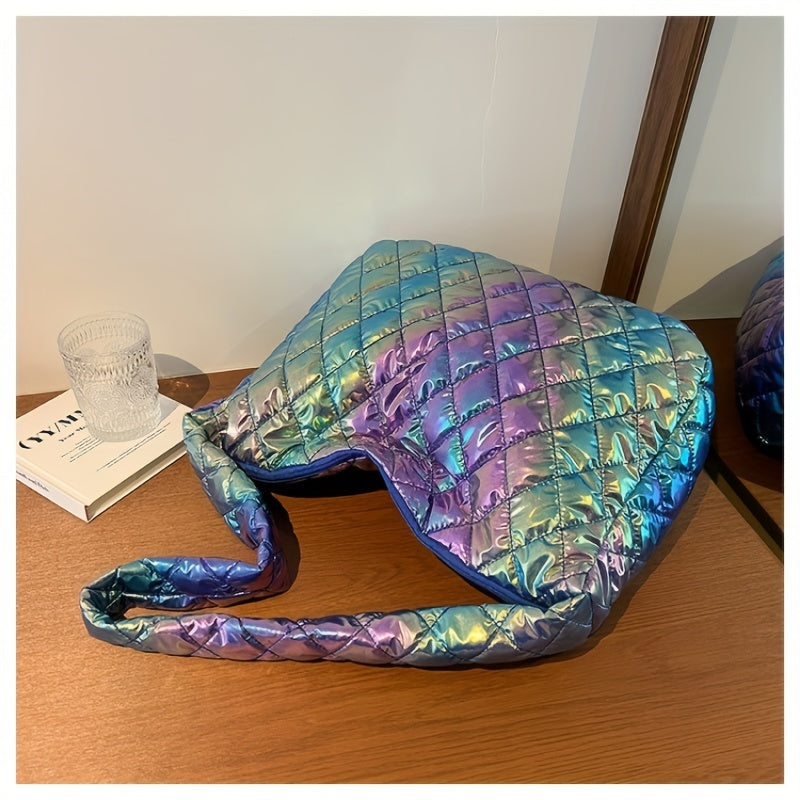 ★★★★★Space Print Cloud Pleated Women's Tote Bag, Fall/Winter New Space Suit Commuter Shoulder Handbag - Simple Casual Large Soft Capacity Purse