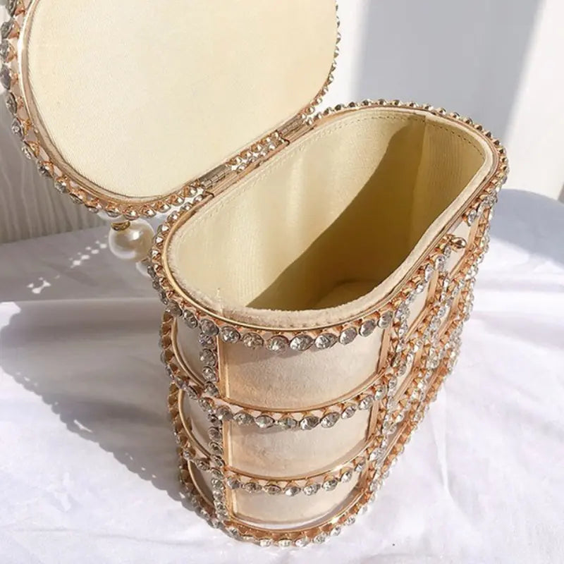 Luxury Beaded Metallic Cage Clutch for Women