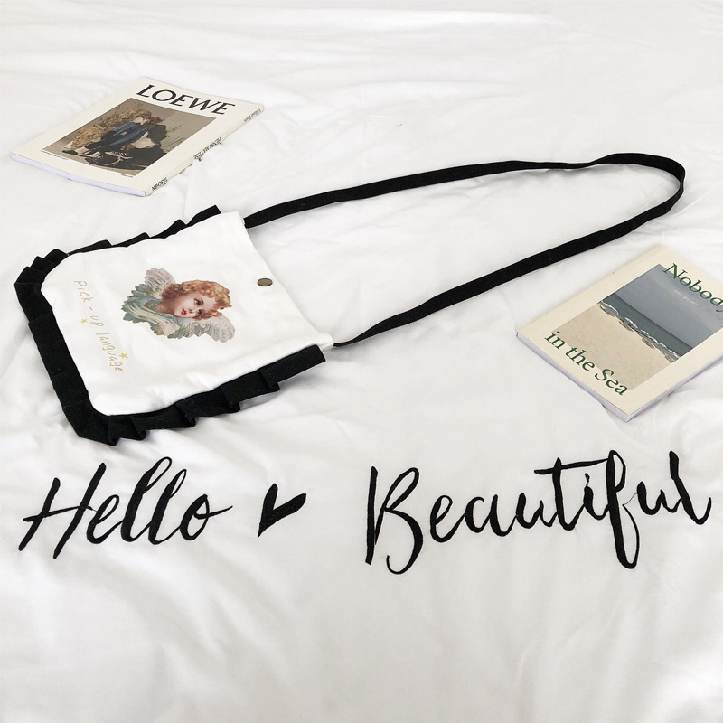 Mini Crossbody Coin Purse with Angel Print and Ruffles