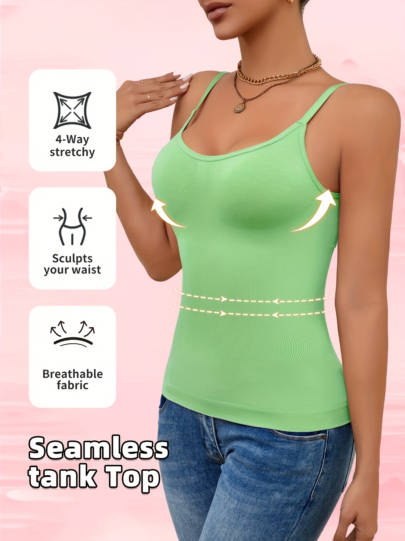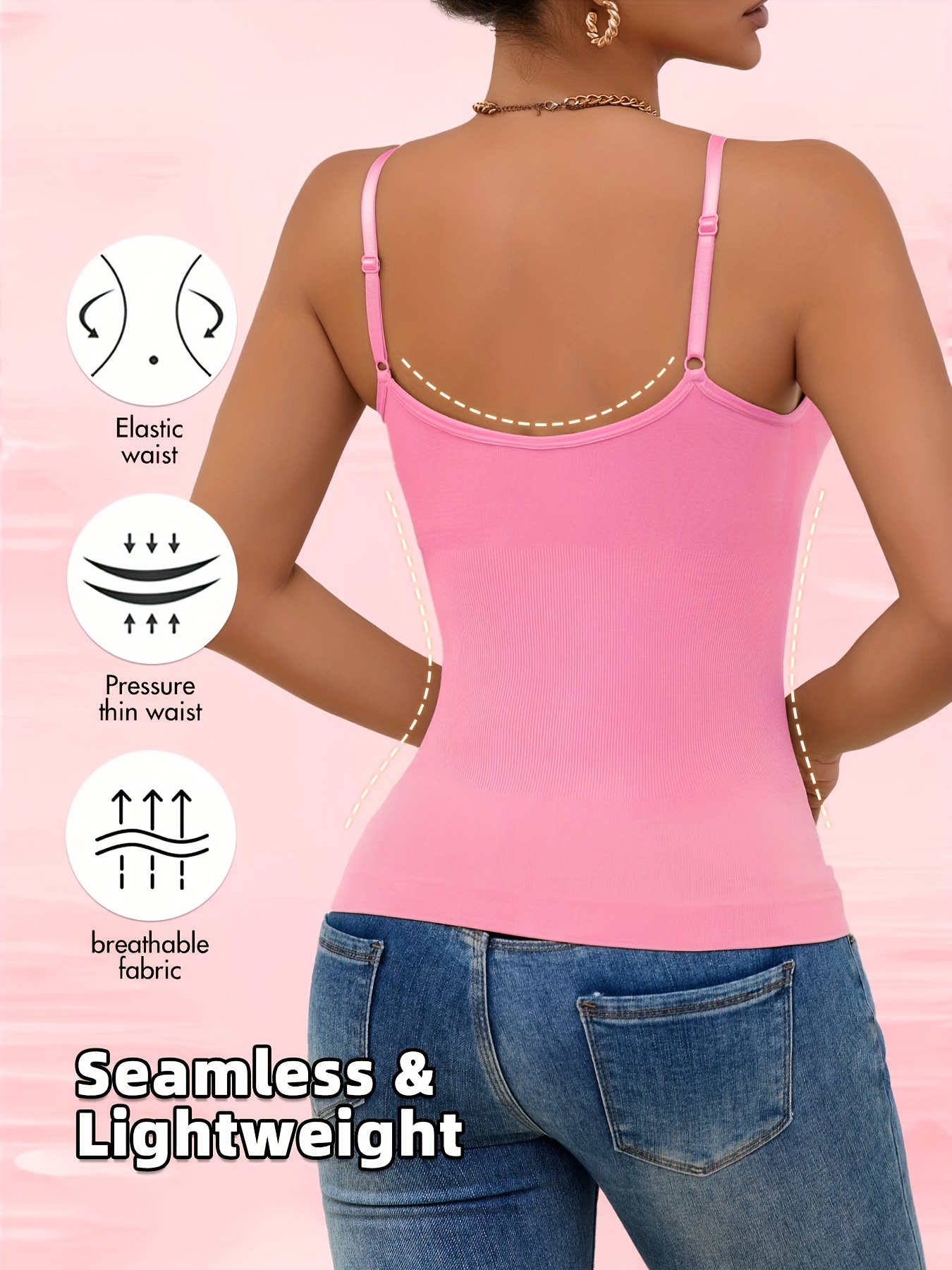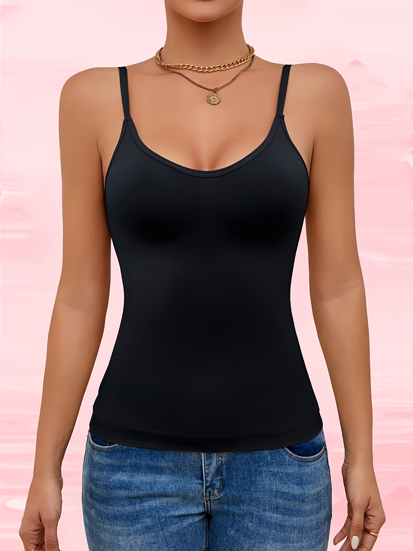 ★★★★★1pc Women's Minimalist Solid-Color Adjustable Spaghetti Strap Tank Top No Padded Cups Comfortable and Breathable Perfect for Casual Wear and Year-Round Outings