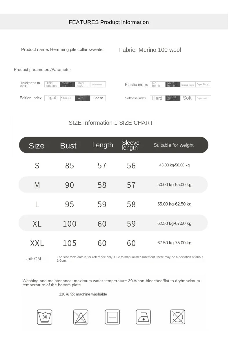 ★★★★★New 100% Merino Wool Turtleneck Cashmere Sweater In Autumn And Winter Women's Casual Knitted Coat Women's Coat