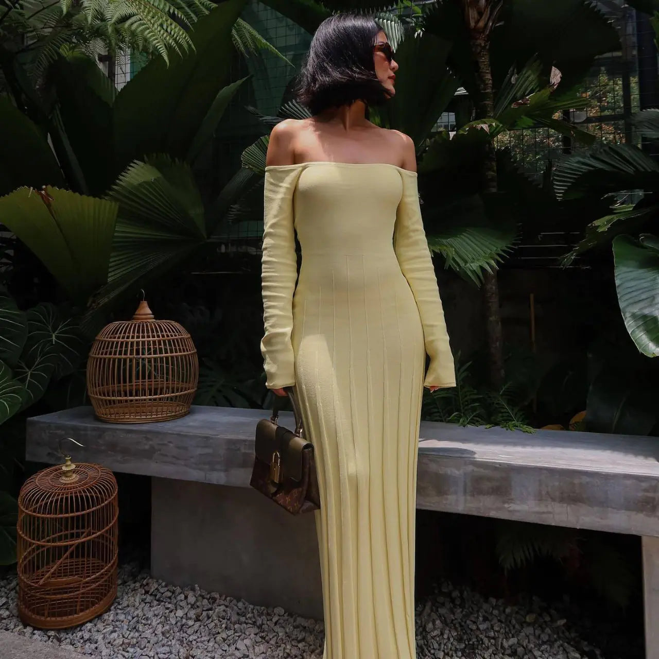 â â â â âUnleash your style with our stunning Off-shoulder Collar Sunken Stripe Knitted Dress. This exquisite dress is designed for the modern woman who loves to make a statement while staying comfortable. Available in three captivating colors: white, black, and yellow, each option radiates charm and elegance.