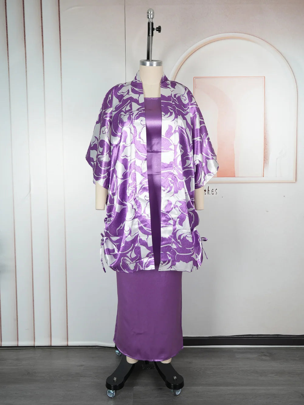 Plus Size Printed Robe Women's Vest Jacket Two-piece Set Dress
