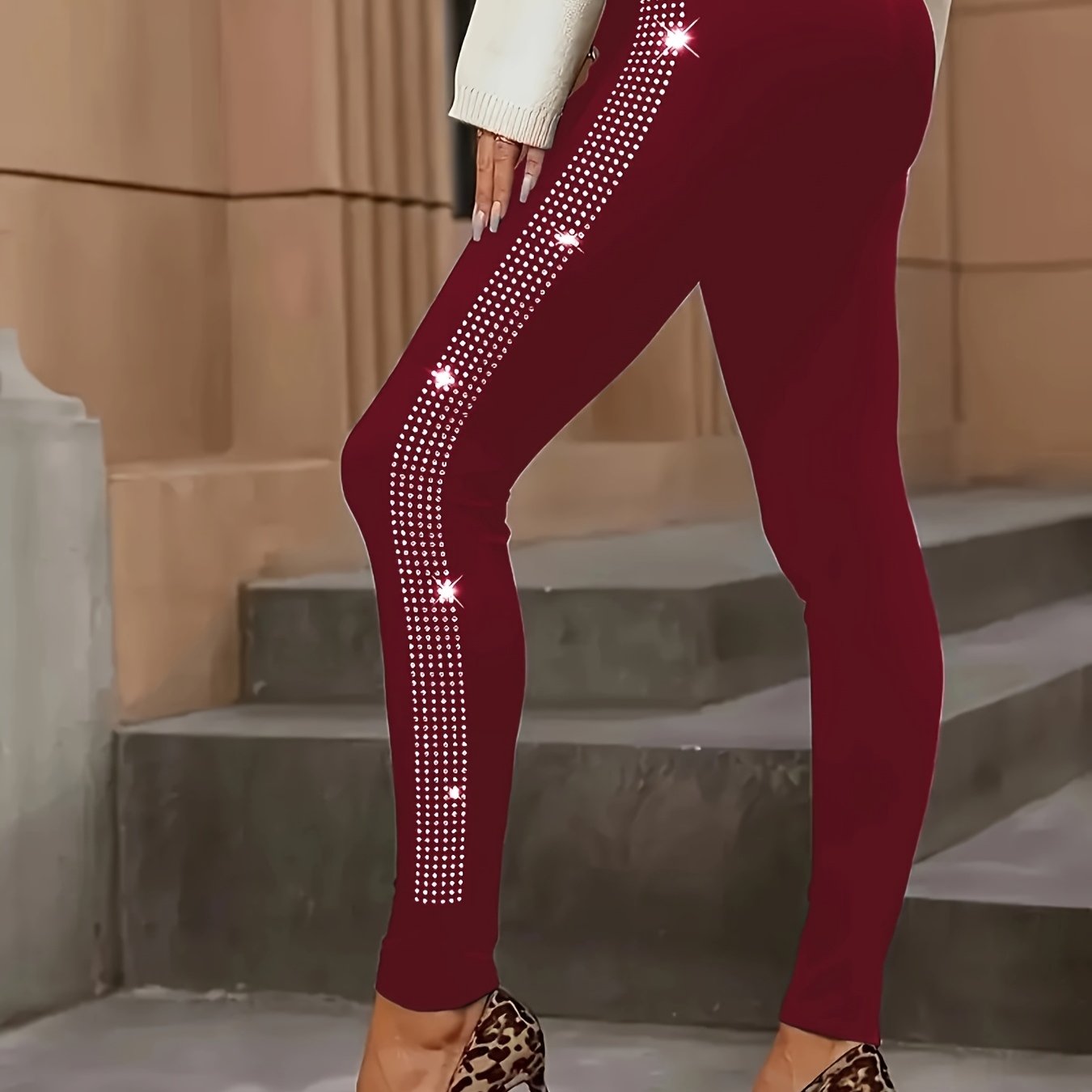 ★★★★★Plus Size Women's Plus Size Two-Piece Set - Elegant Striped Pattern - Stretch Polyester Fabric with Faux Diamond Details - All-Season Fashion Casual Wear