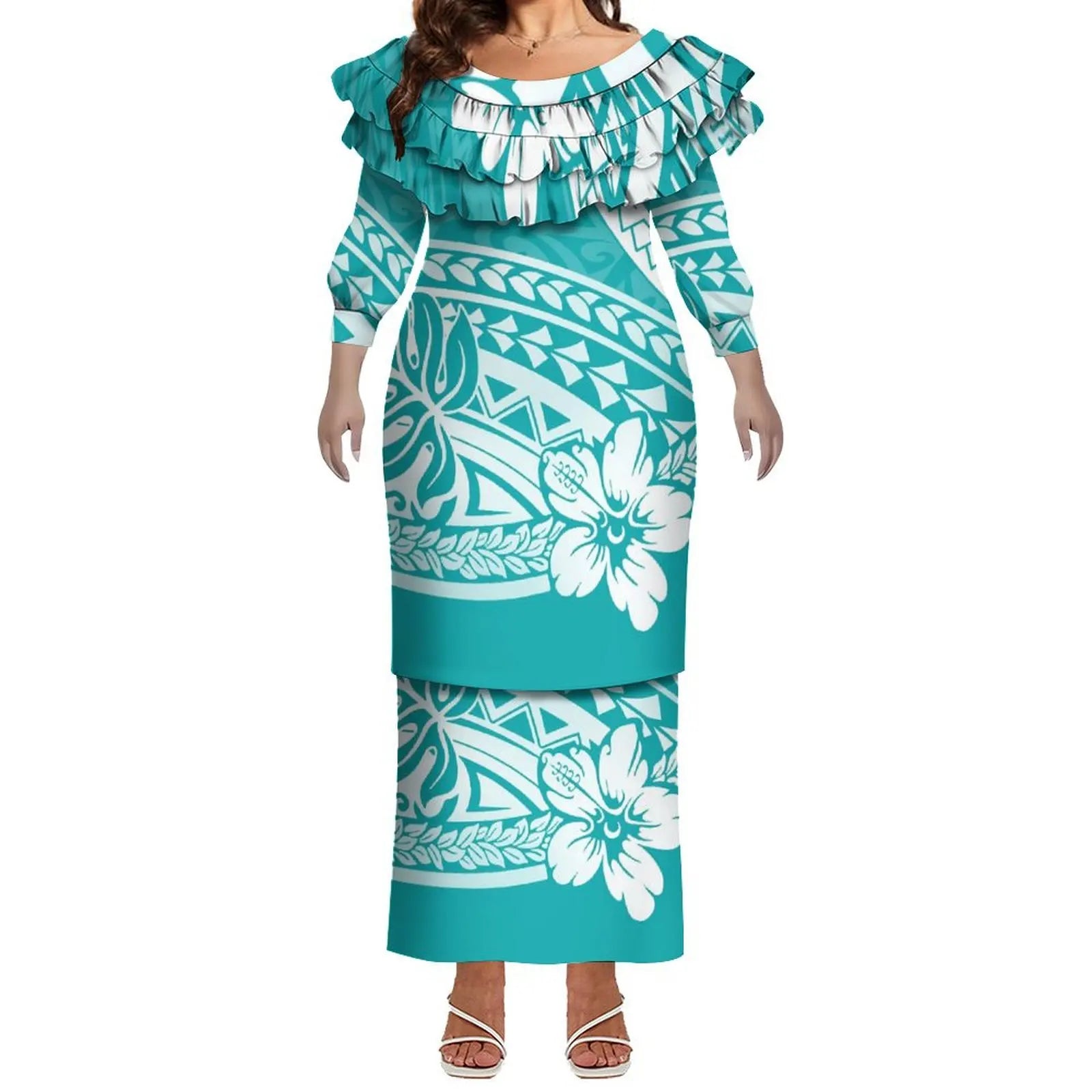 ★★★★★Plus Size Women Hawaiian Print Full Sleeve Long Dress Customized Tonga Paletas Dresses Tribal Party Dress Two Piece Long-Sleeve Suit, Geometric Art Print Pattern Design, Daily Casual, Comfortable to Wear. Easy Fashion, Holiday Outdoor Vacation