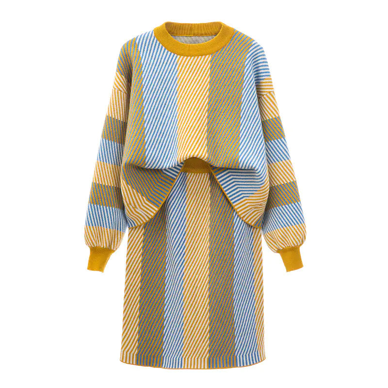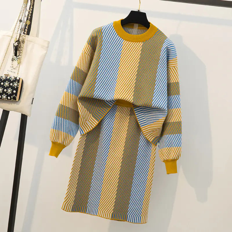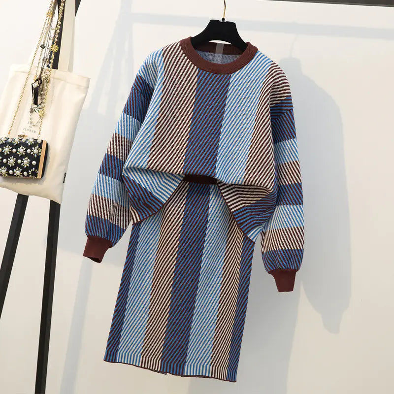 Plus Size Women's Autumn Winter Slimming Dress Set