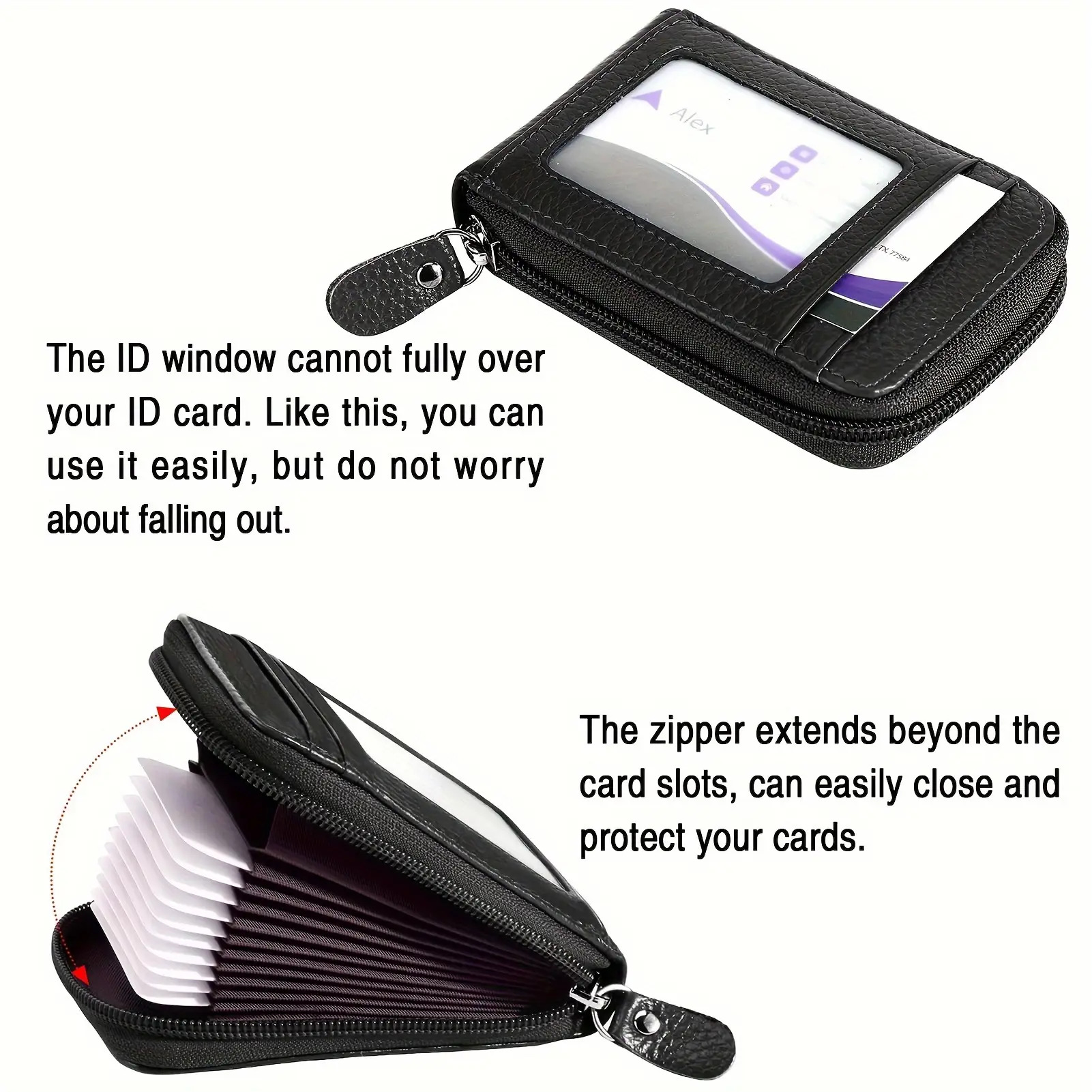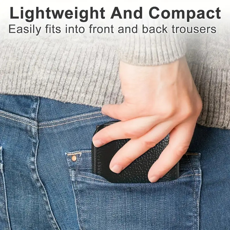★★★★★RFID Blocking Leather Mini Wallet - Men's and Women's 9 Card Slots Card Holder - Compact Organizer Zipper Wallet with ID Window and Driver's License