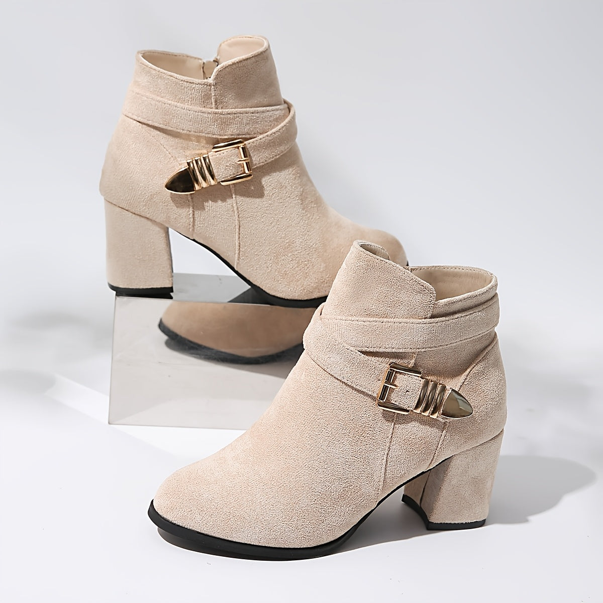 A Pair of Vintage Women's Short Ankle Boots with Chunky Heel, Pointed Toe, and Side Zipper, Height Increase 2.56inch, Women Shoes