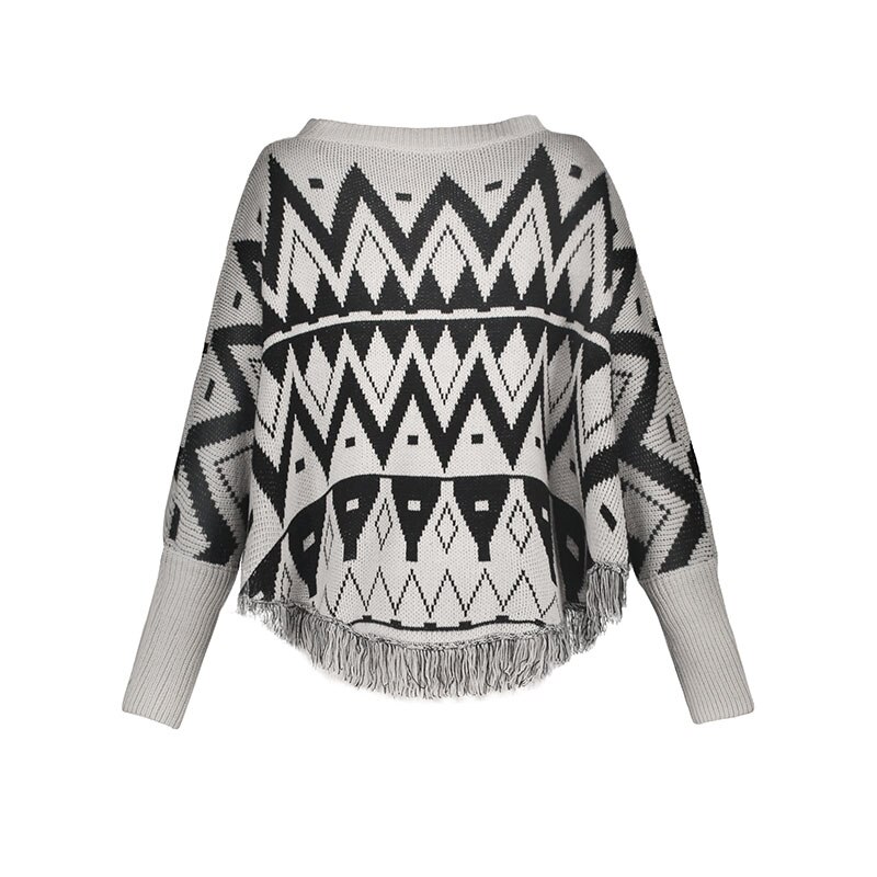 Elevate your wardrobe with this stunning piece that combines style and comfort seamlessly. Don’t miss out on the chance to make a statement with our batwing geometric sweater!