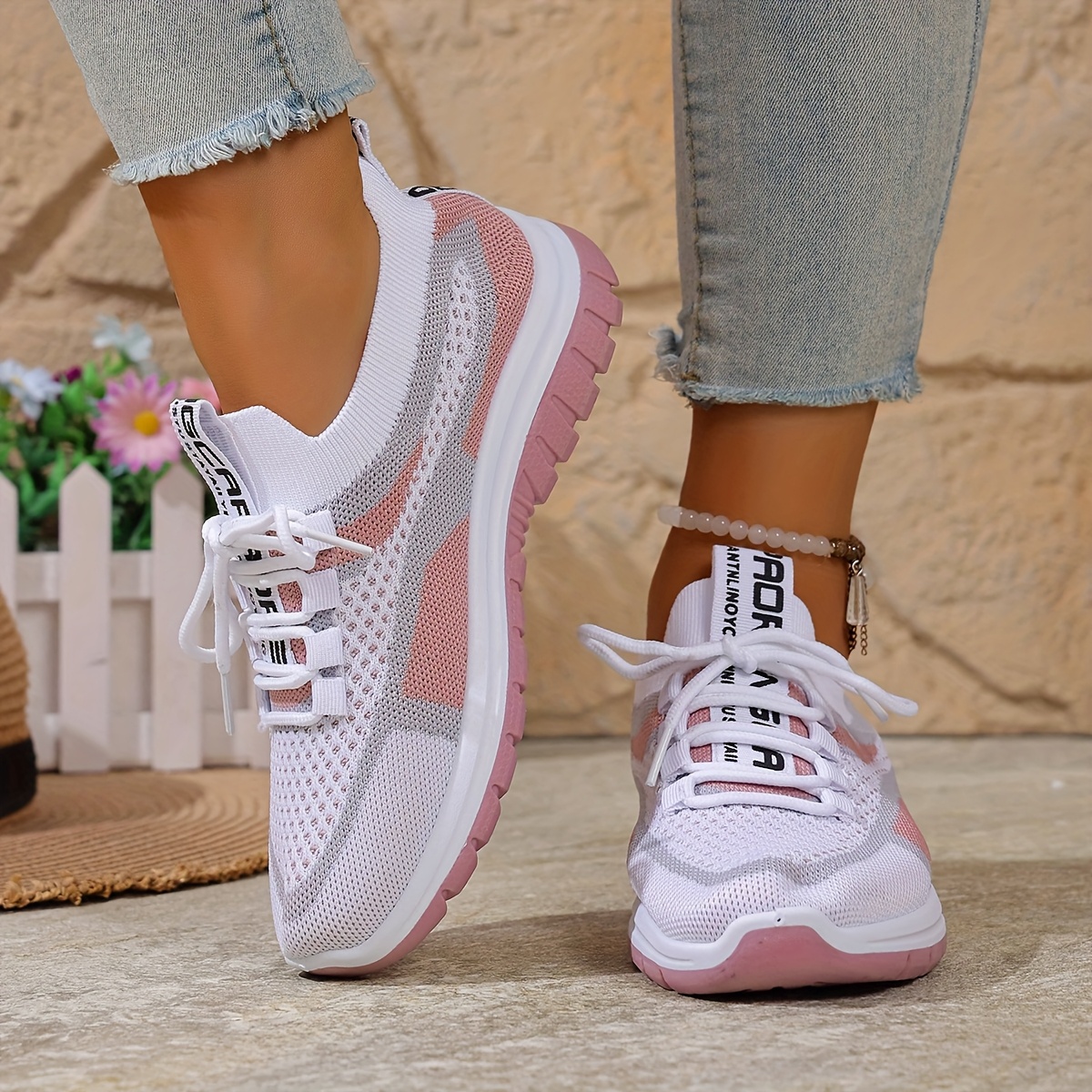 ★★★★★Women's Lightweight Breathable Casual Shoes | Dual-Use Slip-On And Lace-Up, Pink- Gradient, Shock Absorption And Arch Support, Non-Slip Sole, All-Season, Easy-To-Clean Fabric Upper
