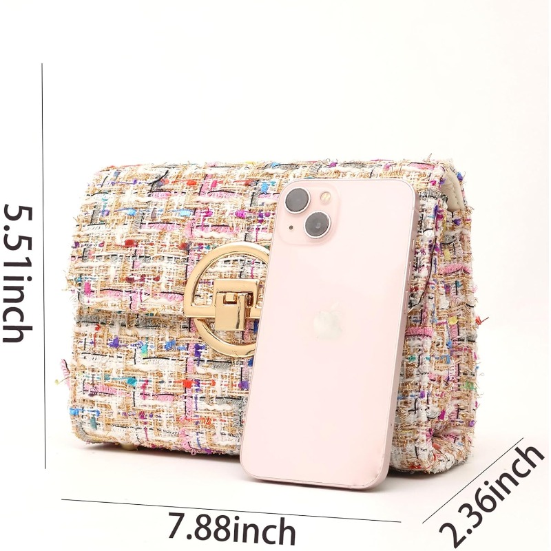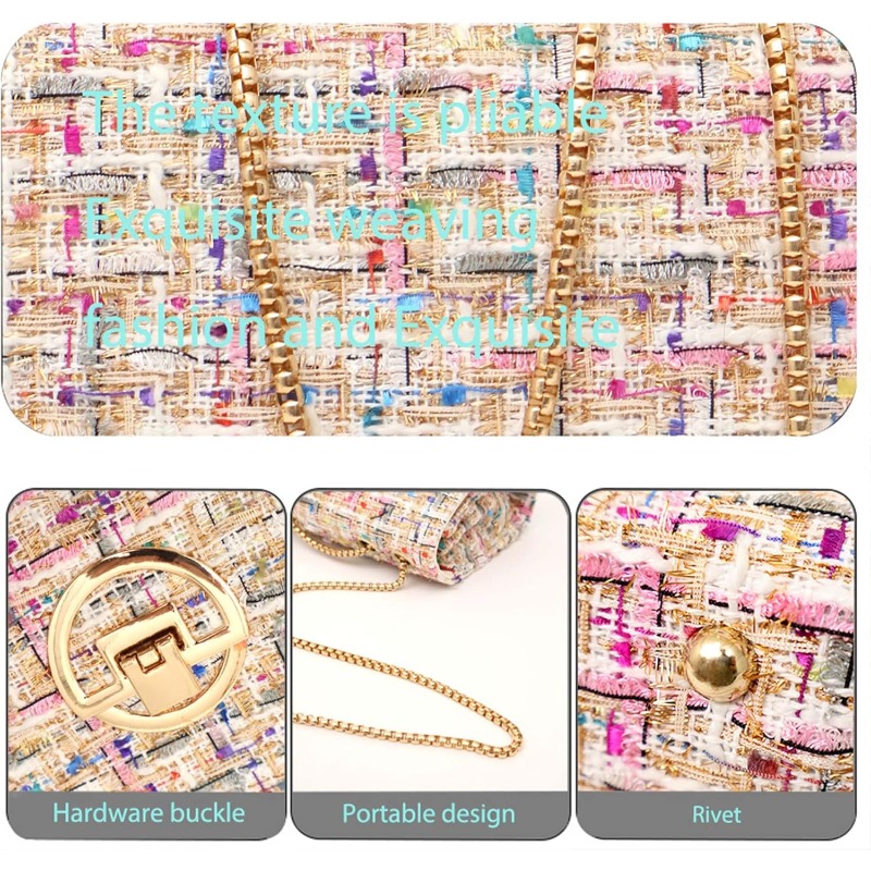 ★★★★★Women's Tweed Small Shoulder Bag Handbag and Wallet Fashion Women's Chain Quilted Crossbody Dinner Clutch